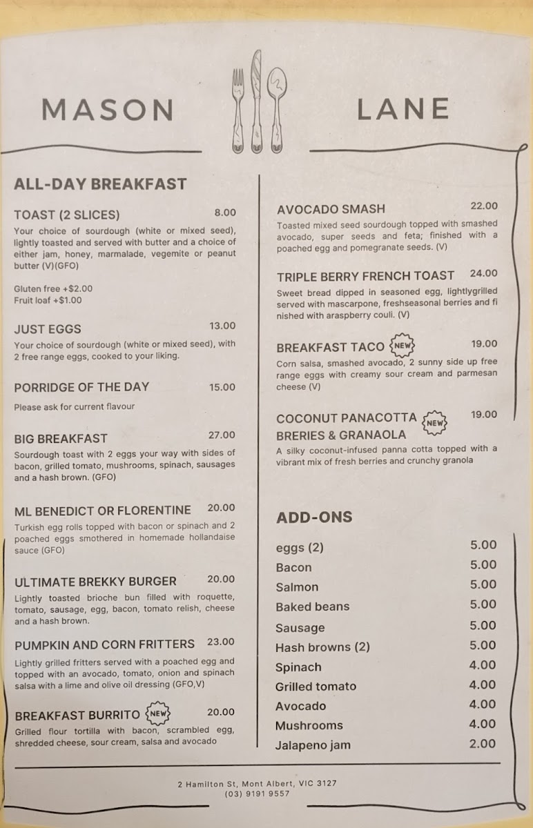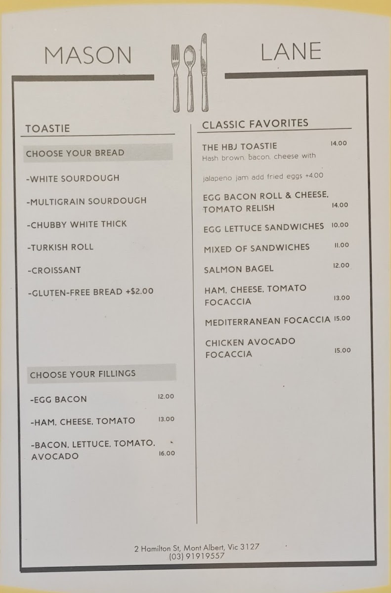 Nestled at 2 Hamilton St, Mont Albert, Mason Lane Café is a cozy haven that invites both locals and visitors to bask in its warm, inviting atmosphere. This charming café serves up a delightful blend of quality coffee and hearty café fare, all within a space that feels like a home away from home.